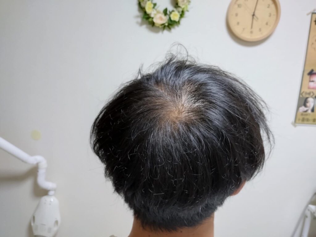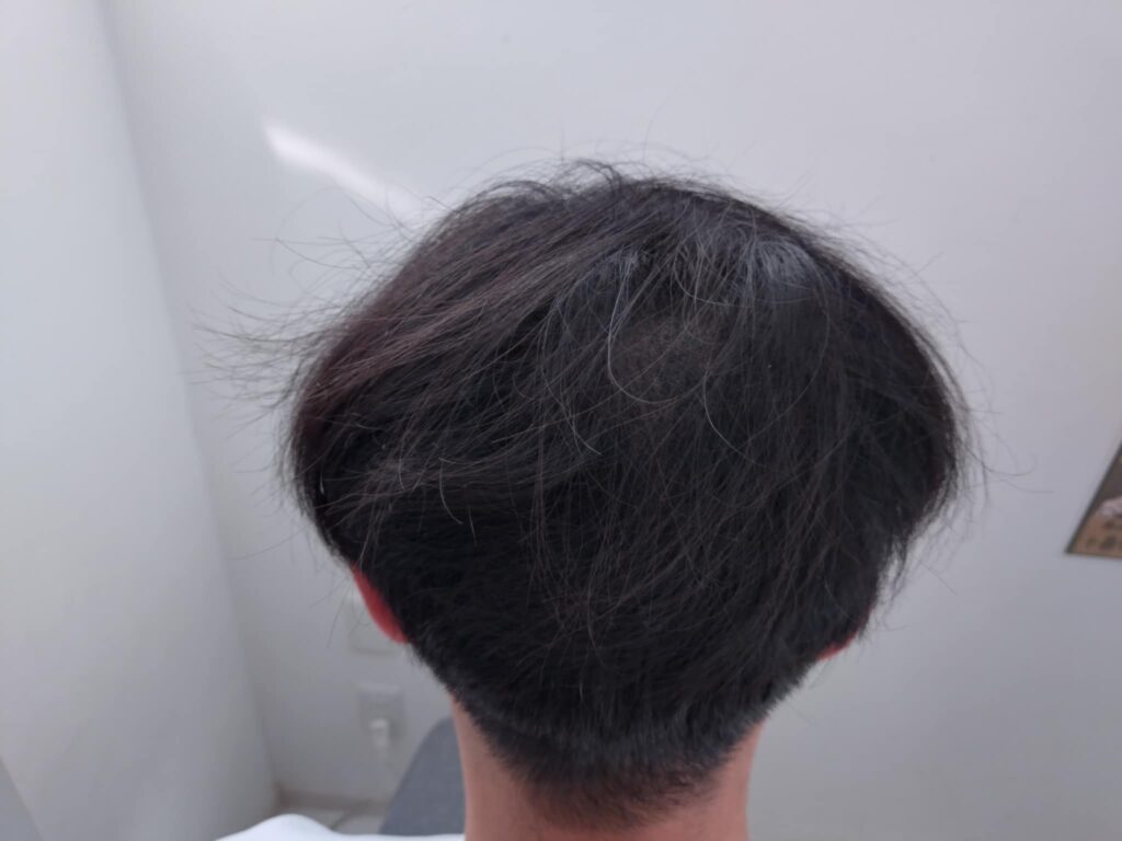 120分×2回の施術で、このような感じで地肌が見えていた部分にも、毛が生えたような色合いになりました。